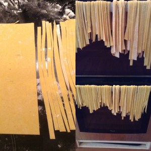 Den här pastan passar inte att hänga upp, bilden visar att det går bra att skära den om du inte vill använda pastamaskin. Pastan som hänger är efter receptet på ”öppen hummerlasagne” men utan örter!