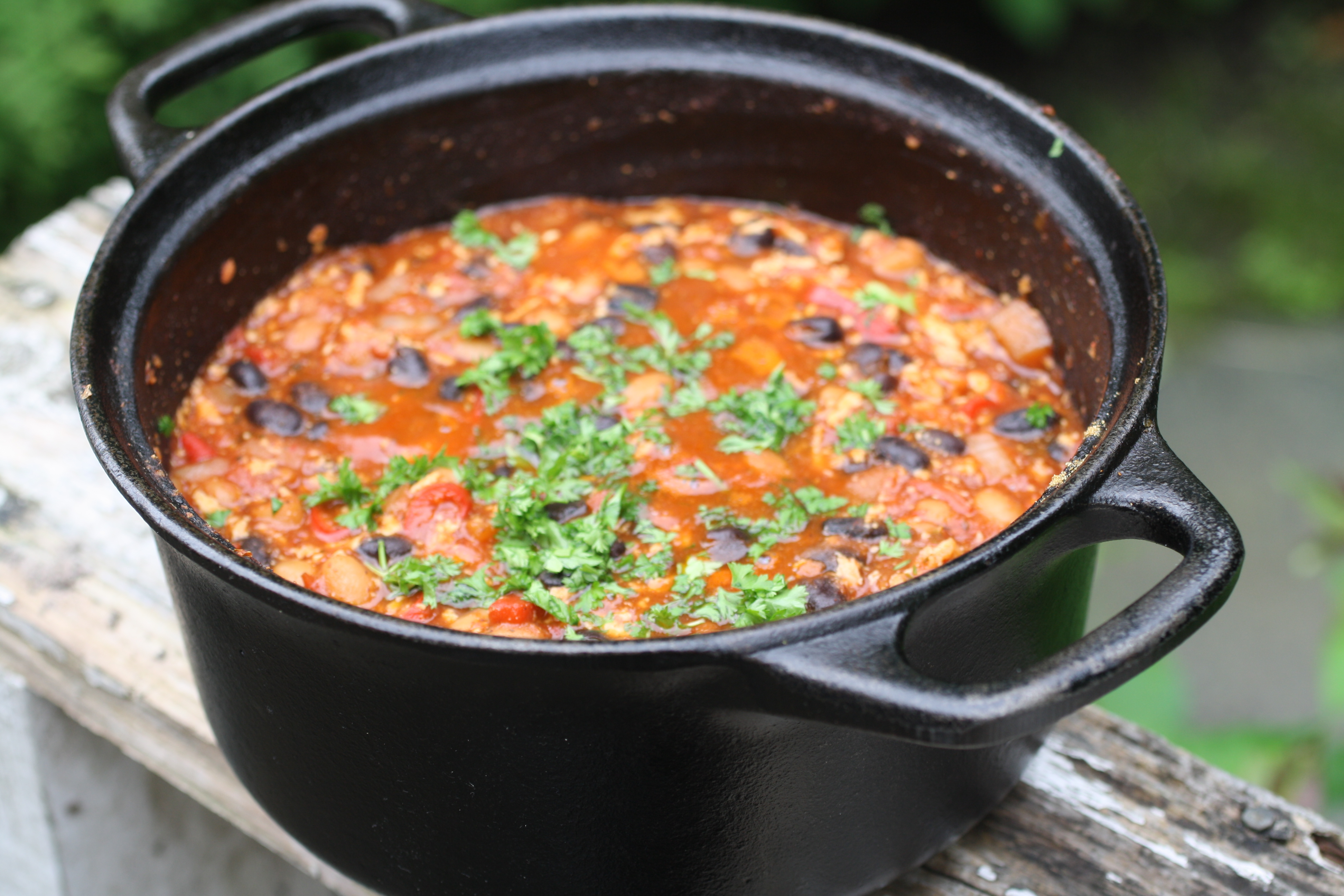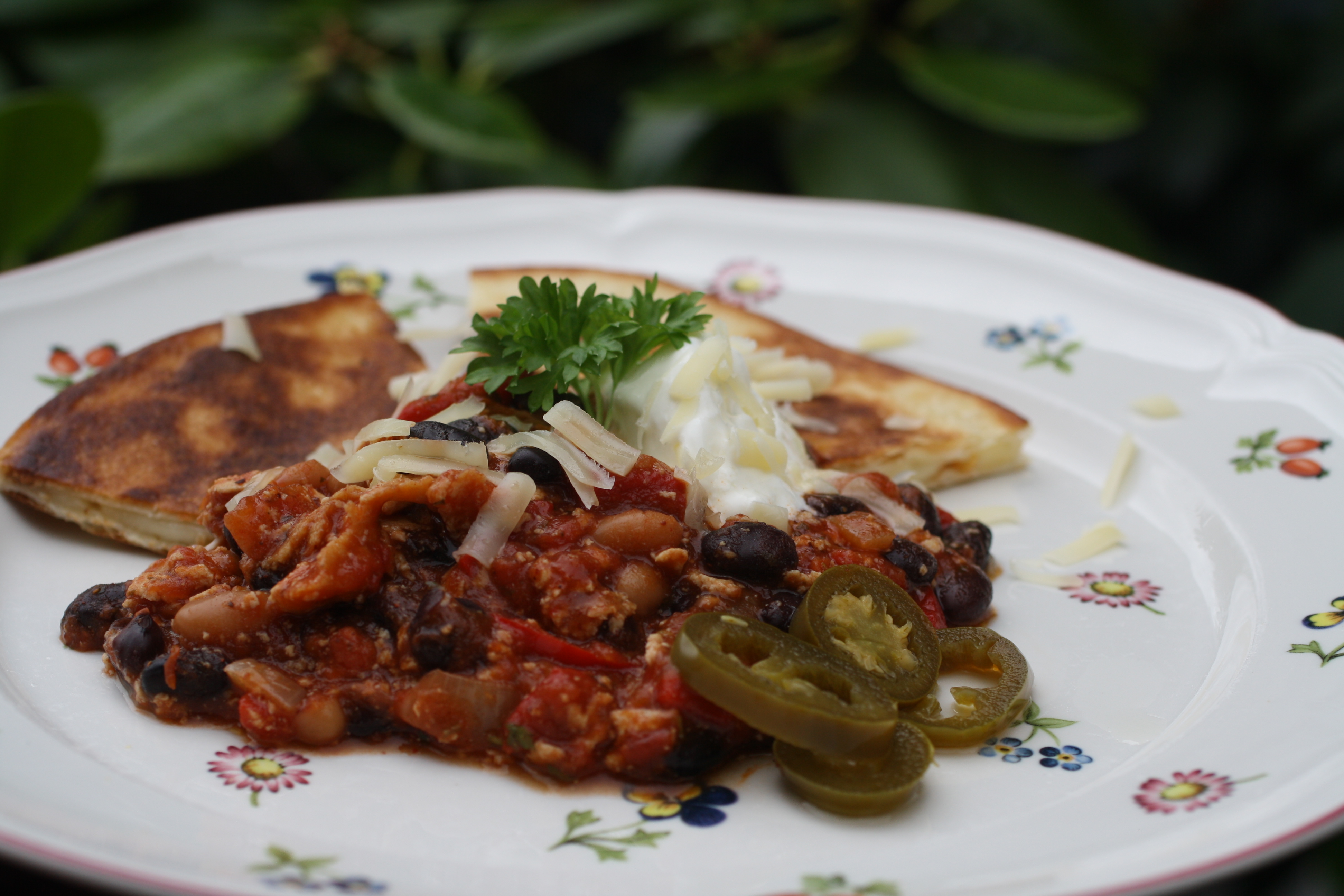 Jag kan lova att den här grytan värmer, men var och en får moderera kryddmängden efter egen smak tycker jag, själv älskar jag mat med sting och hetta särskilt kulna dagar! Man kan servera tortillas till rätten eller välja nachos, ett gott ljust bröd passar också till. Sour supreme som är ett veganskt alternativ till smetana eller gräddfil passar också bra till. Riven ost (vegansk) är också gott till. Om ni är fler än 2-3 personer gör dubbel sats. Blir det över så är chilin ännu godare dagen efter.